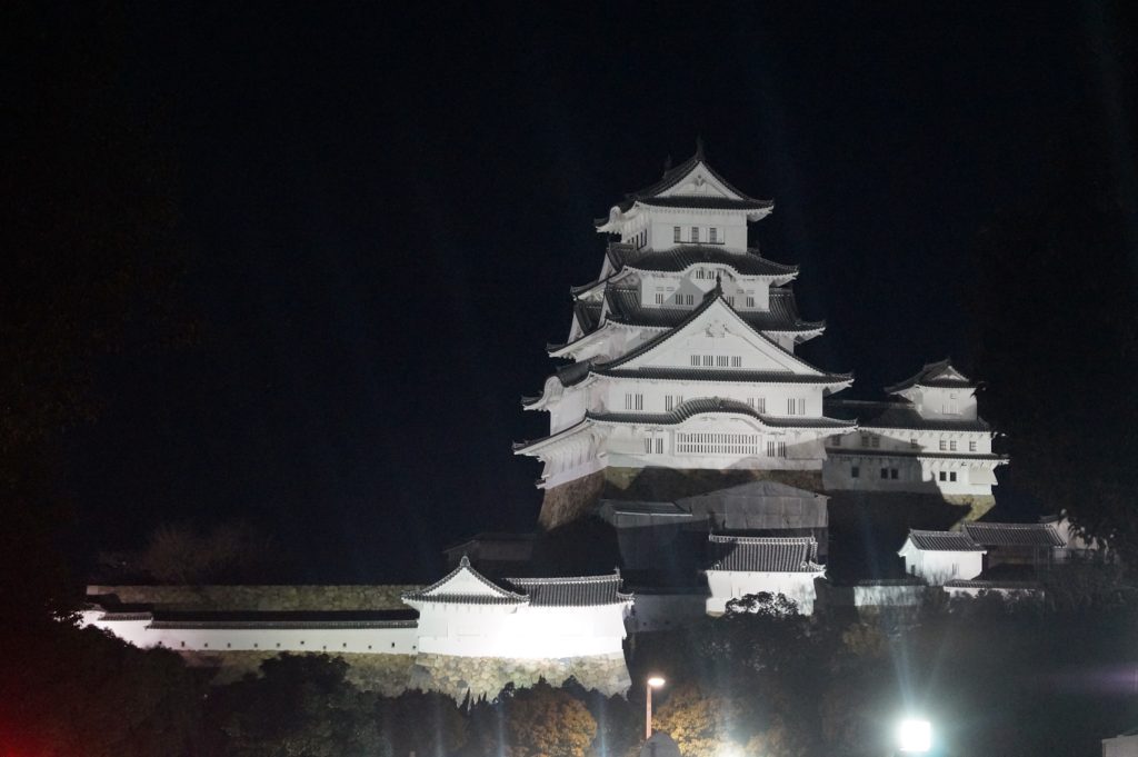 天守へのライトアップは現在休止しています。機器を更新しLEDにするそうです。正面から見たらかなり暗いですが、東から見たら普段とあまり変わらないかも。
